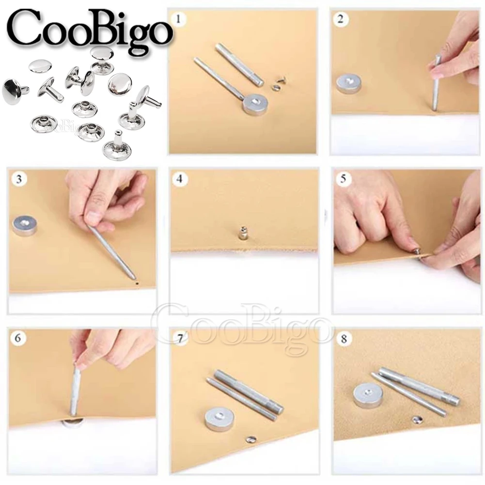 1. Prepare material and tools: leather (or other things that need to install rivets), hammer, piercing mold, rivet sets, installing base and installing pile.